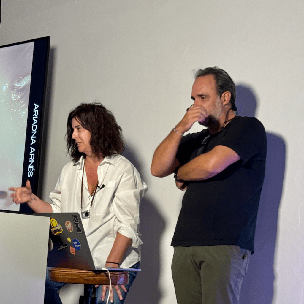 Ariadna Arnés y Éric Dufourd son creadores de imágenes. Ella, fotógrafa profesional. Él, diseñador de interiores. Nunca han trabajado juntos, pero siguen caminos paralelos en su exploración de la ‘sintografía’ como una nueva disciplina artística. Desde hace tres años mantienen una conversación continua sobre sus respectivos aprendizajes. En esta charla, compartieron tanto su proceso creativo como cómo han logrado monetizar este conocimiento y, al mismo tiempo, cómo buscan que las imágenes sintéticas transmitan emociones, reinventando lo real y abriendo horizontes hacia realidades imaginadas. En sus propias palabras: “Creemos que en este nuevo territorio no existen fronteras: la única condición es atreverse a imaginar. Nos interesa reflexionar sobre ese cruce entre estética, ética y tecnología, donde la creación deja de limitarse a capturar lo que existe para transformarse en la posibilidad de imaginar lo que podría existir”.